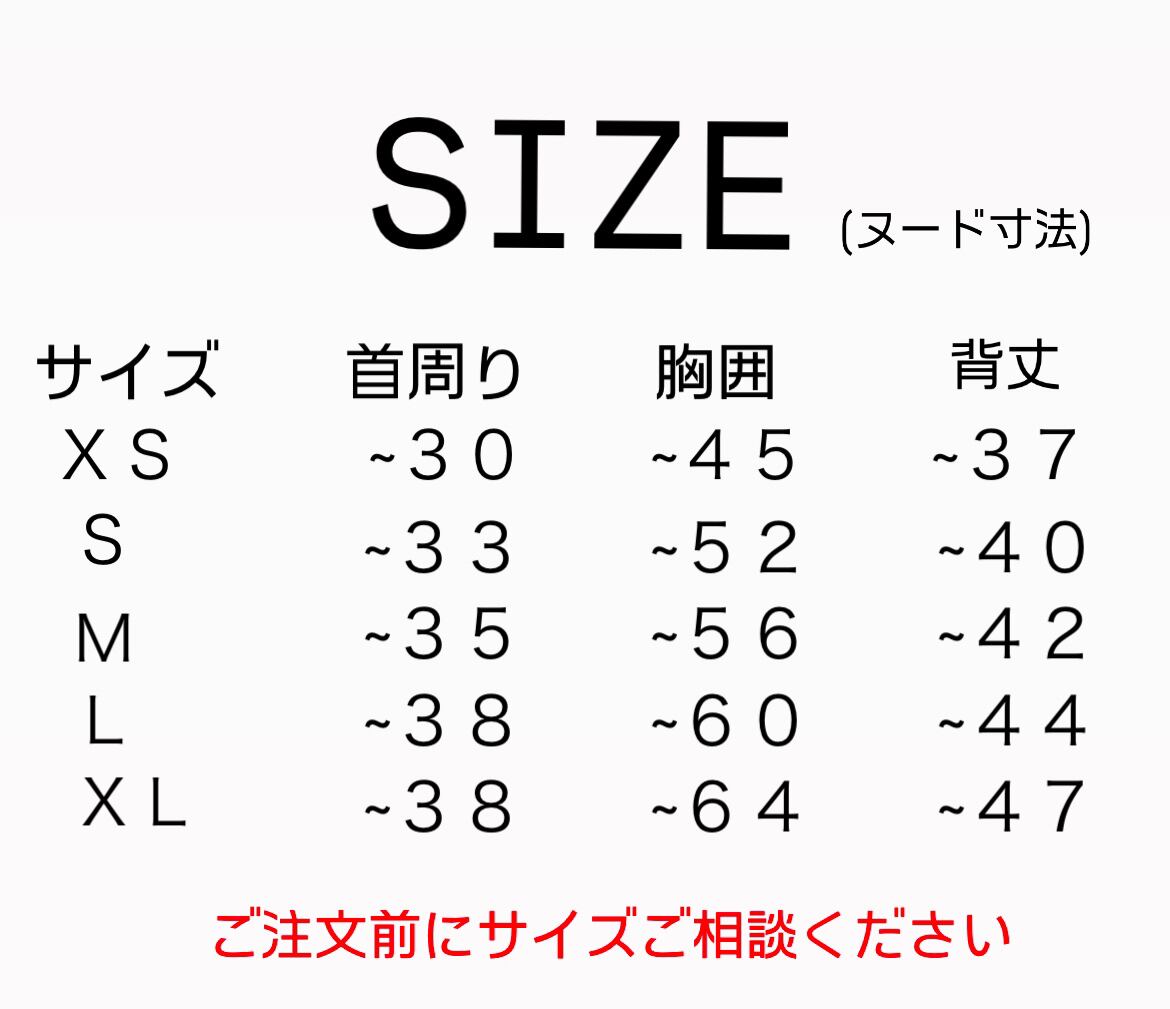 調整してお作りしますのでご注文時に、首周り、胸周り、背丈、体重、犬種を備考欄にお願いします